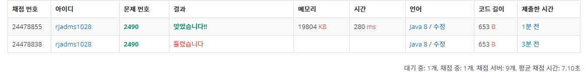 2490번: 윷놀이