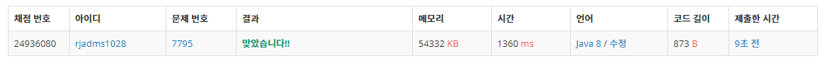 7795번: 먹을 것인가 먹힐 것인가