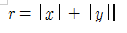 해당하는 점들의 집합은 정사각형을 45도 회전시킨것 같은 변의 길이가 모두 같은 마름모가 나오는데