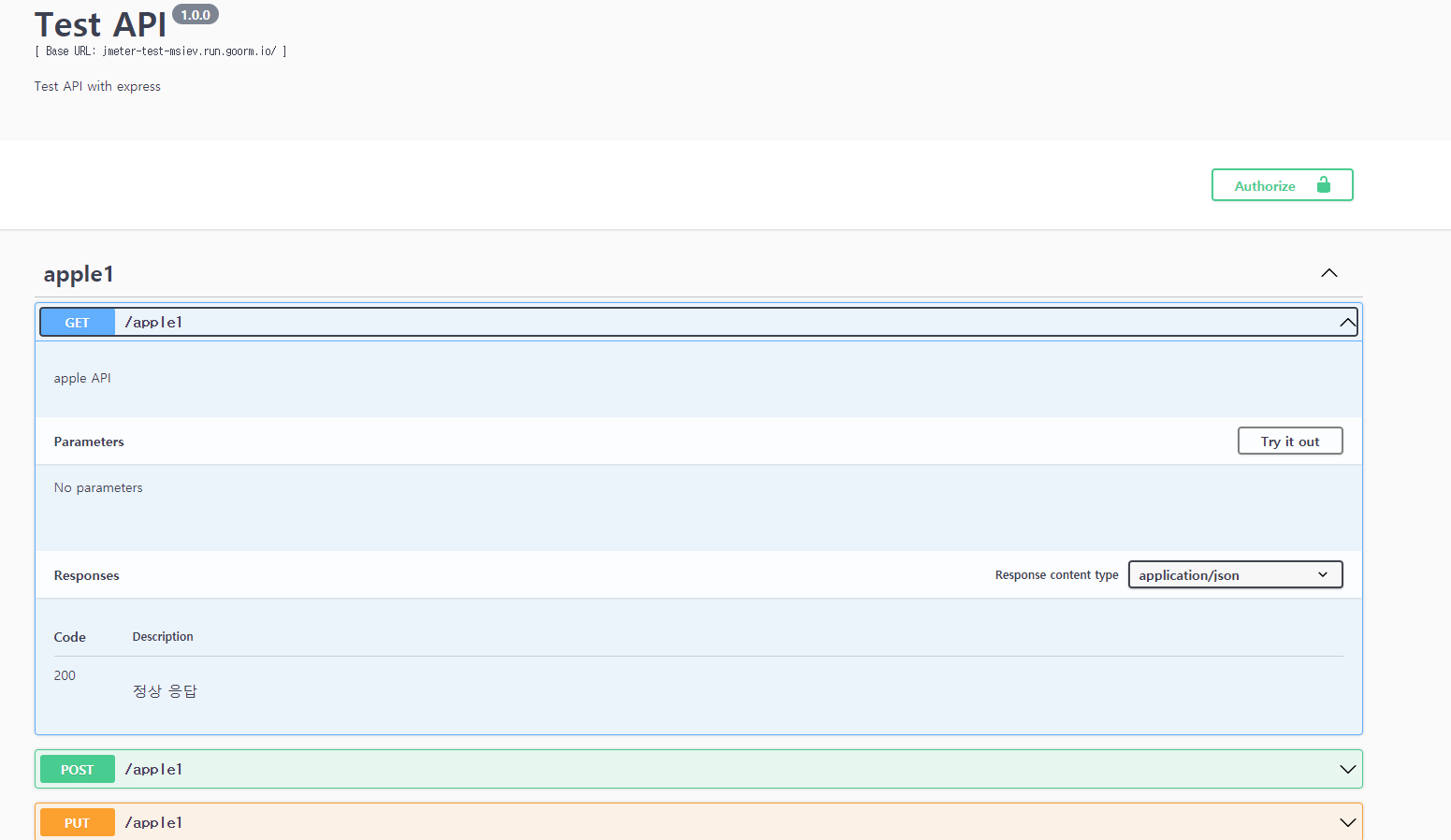 일단 값이 정상적으로 넘어오는지 확인하기 위해 GET: apple1에 대한