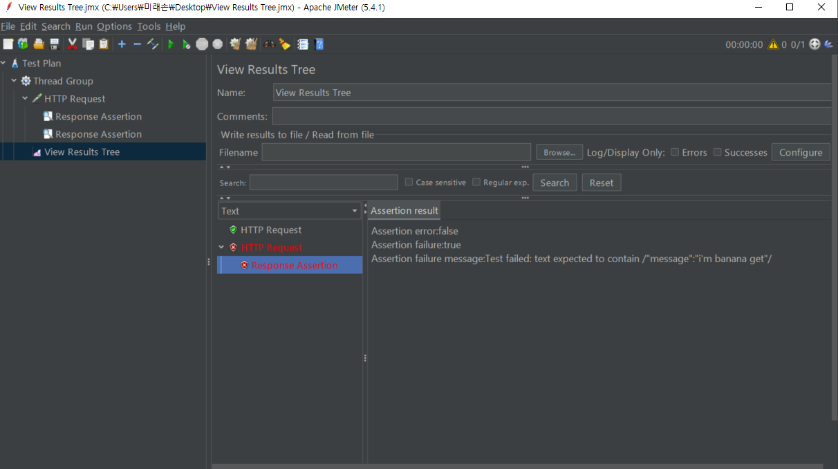 정상적으로 나오는 걸 확인하고 이번엔 기대값을 banana로 수정해 줍니다.