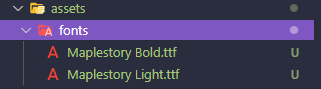 assets/fonts 라는 폴더를 만들고 안에 폰트를 삽입해줍니다.