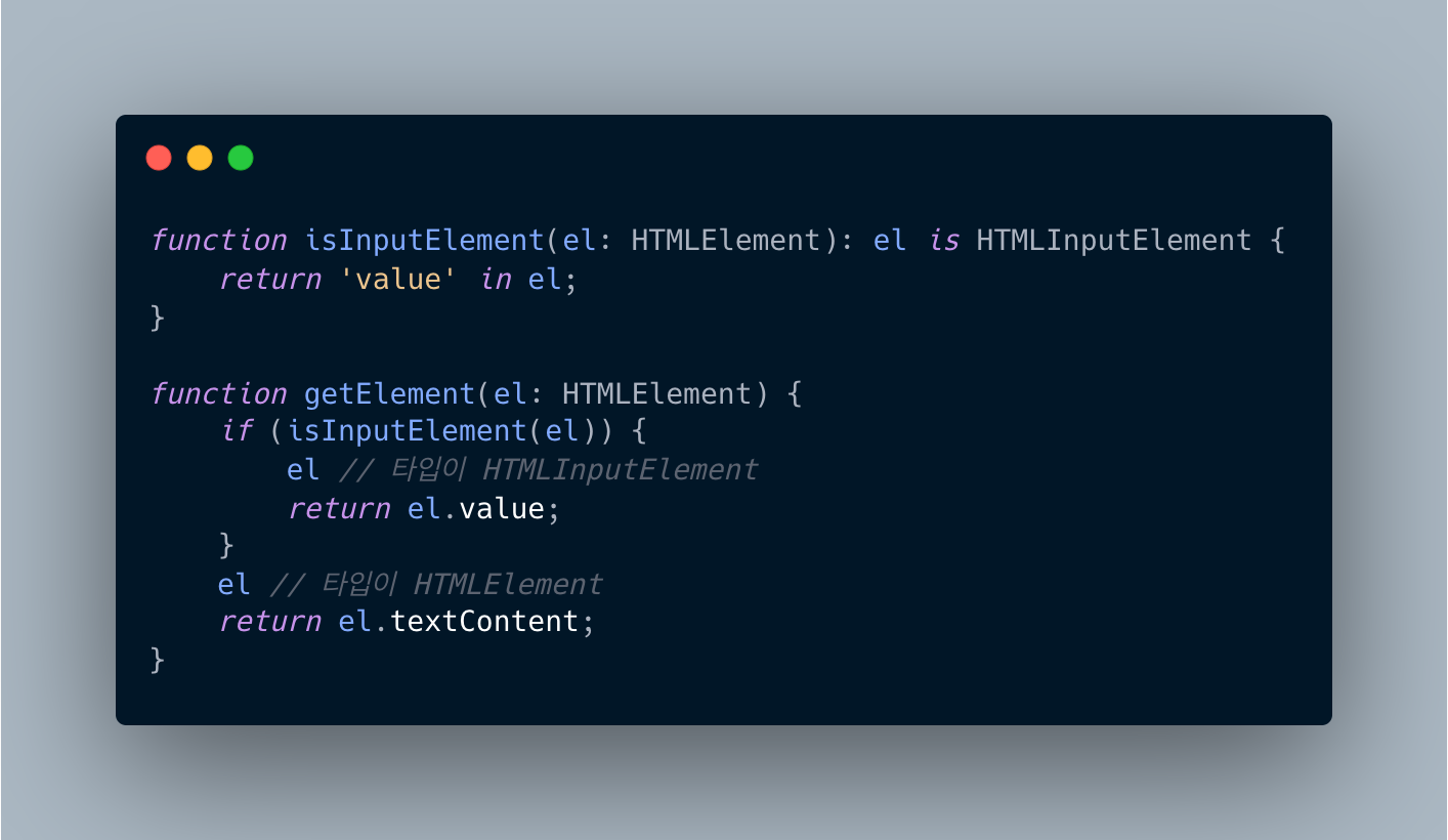 타입 식별을 돕기 위한 커스텀 함수를 도입합니다.