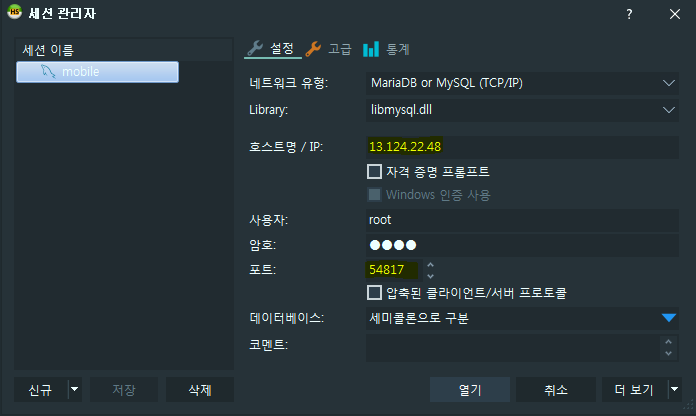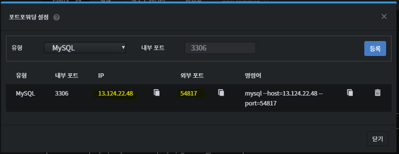 아까 기억해둔 ip와 port를 입력해줍니다.